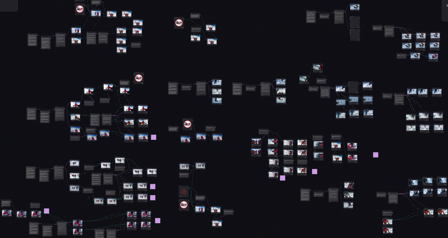 Scenes emerge instead from iterative generation. Landscapes materialise without scouting. Camera movement is simulated rather than executed. The sun behaves exactly as instructed. From a distance, this looks like elimination — the disappearance of cost itself.